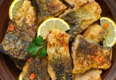 Карп жареный с соусом тартар из вяленого томата и огурца