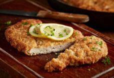 Стейк из свиной шеи с соусом Дор-блю и печёным картофелем